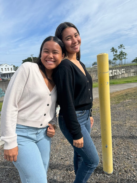 Our Nora Knit Button Top features a button down and a V neckline. Knit